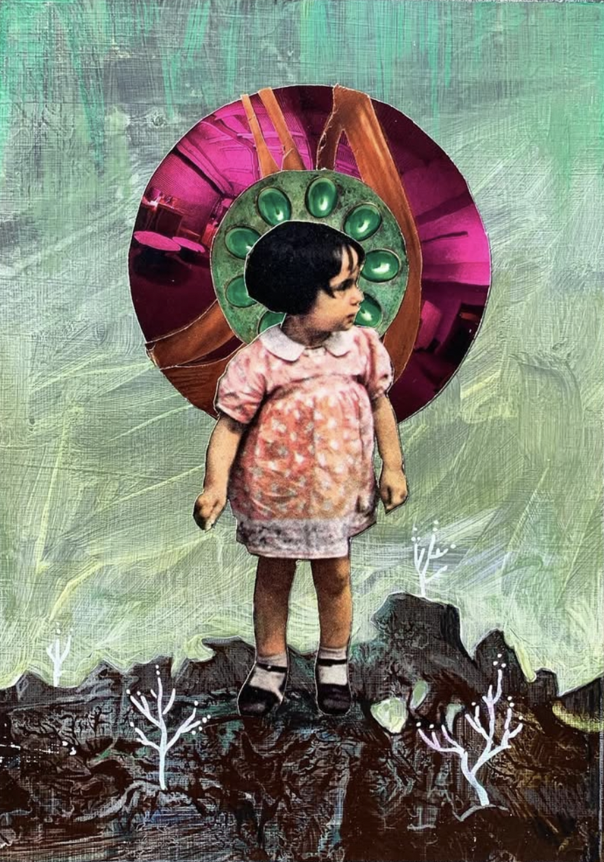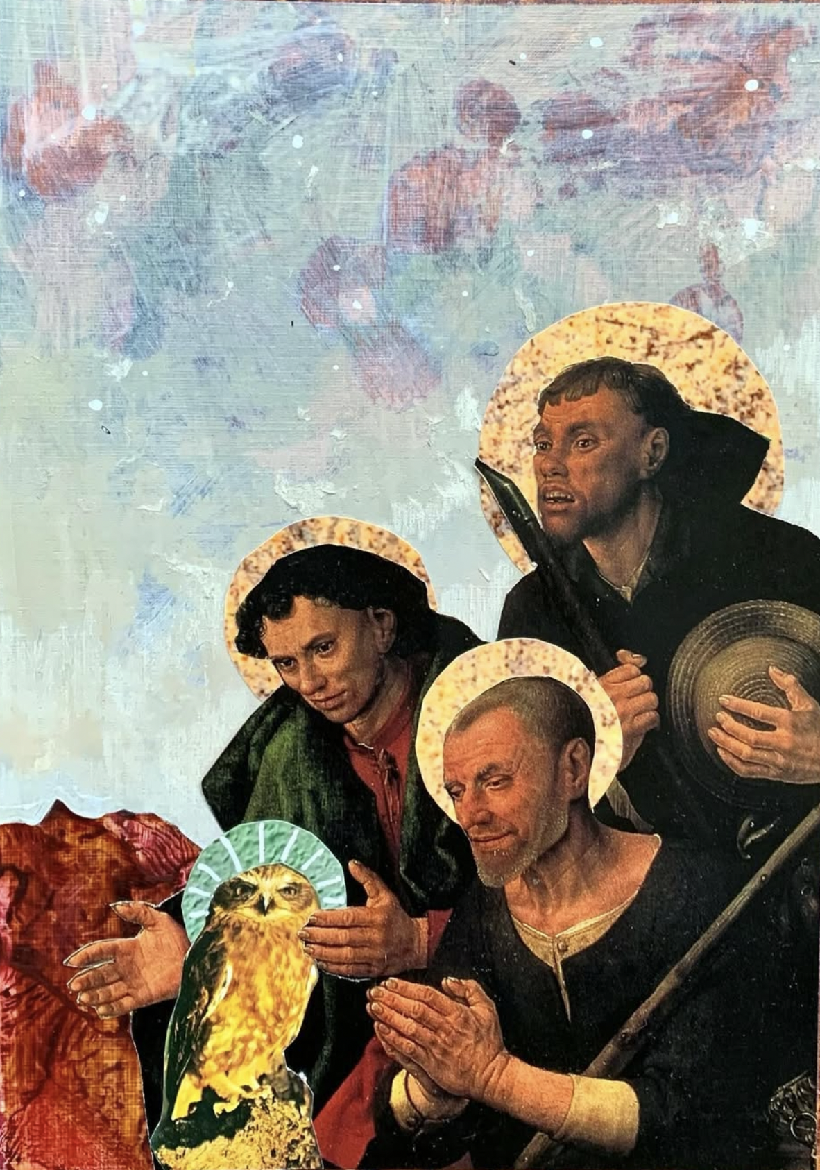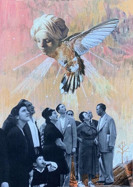 visions from behind is a series of works that moves between reality and the subconscious. drawing inspiration from the surrealists, the collages merge with painterly elements to create figurative yet ambiguous images. Familiar forms dissolve into unexpected relationships, inviting the viewer to look twice — and think deeper. the works balance humor and unease. they can provoke a quiet smile, but also open space for reflection. what is visible is never the full story; meaning unfolds gradually, shaped by personal associations and hidden narratives.
