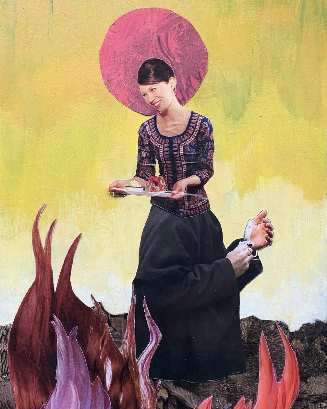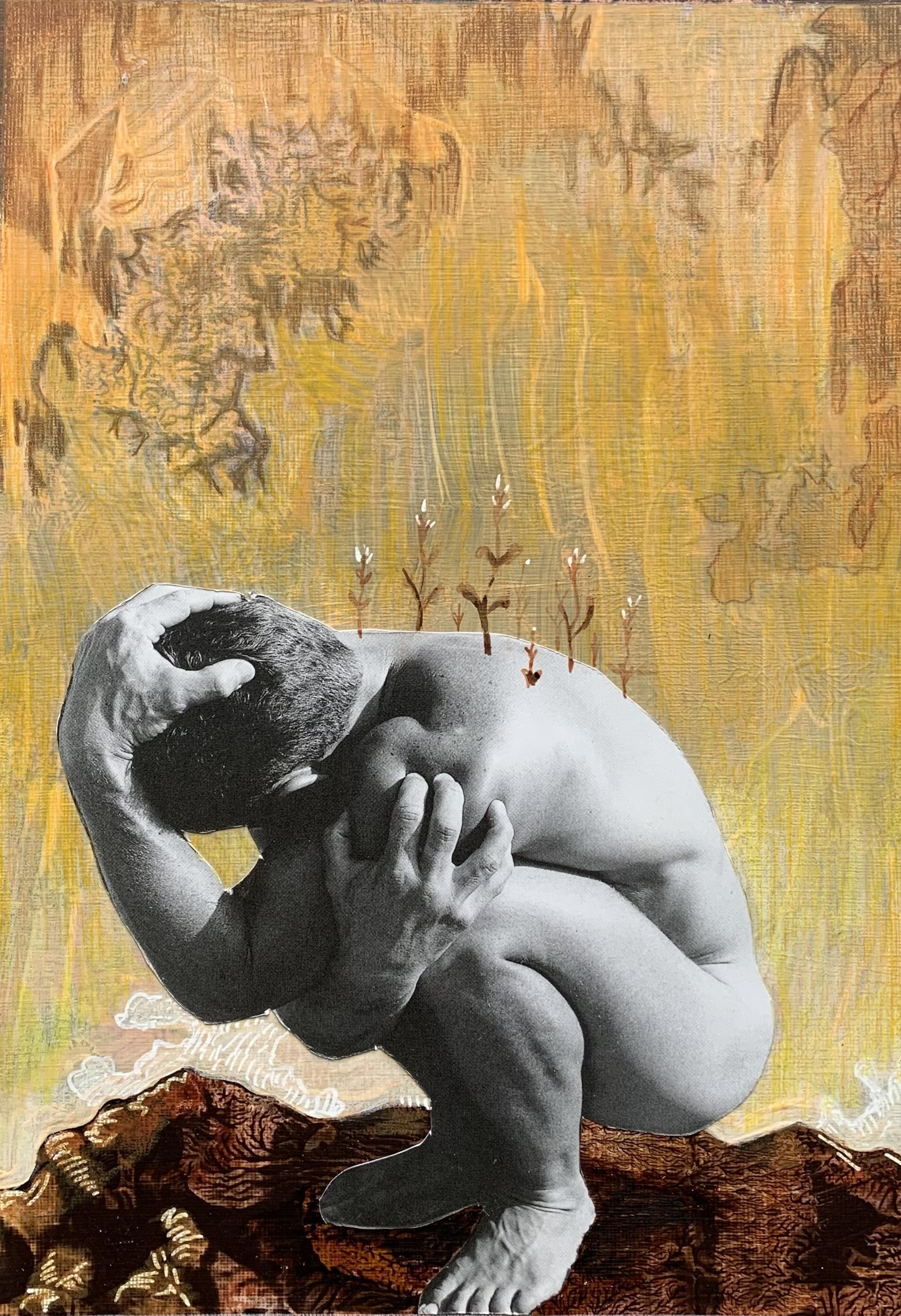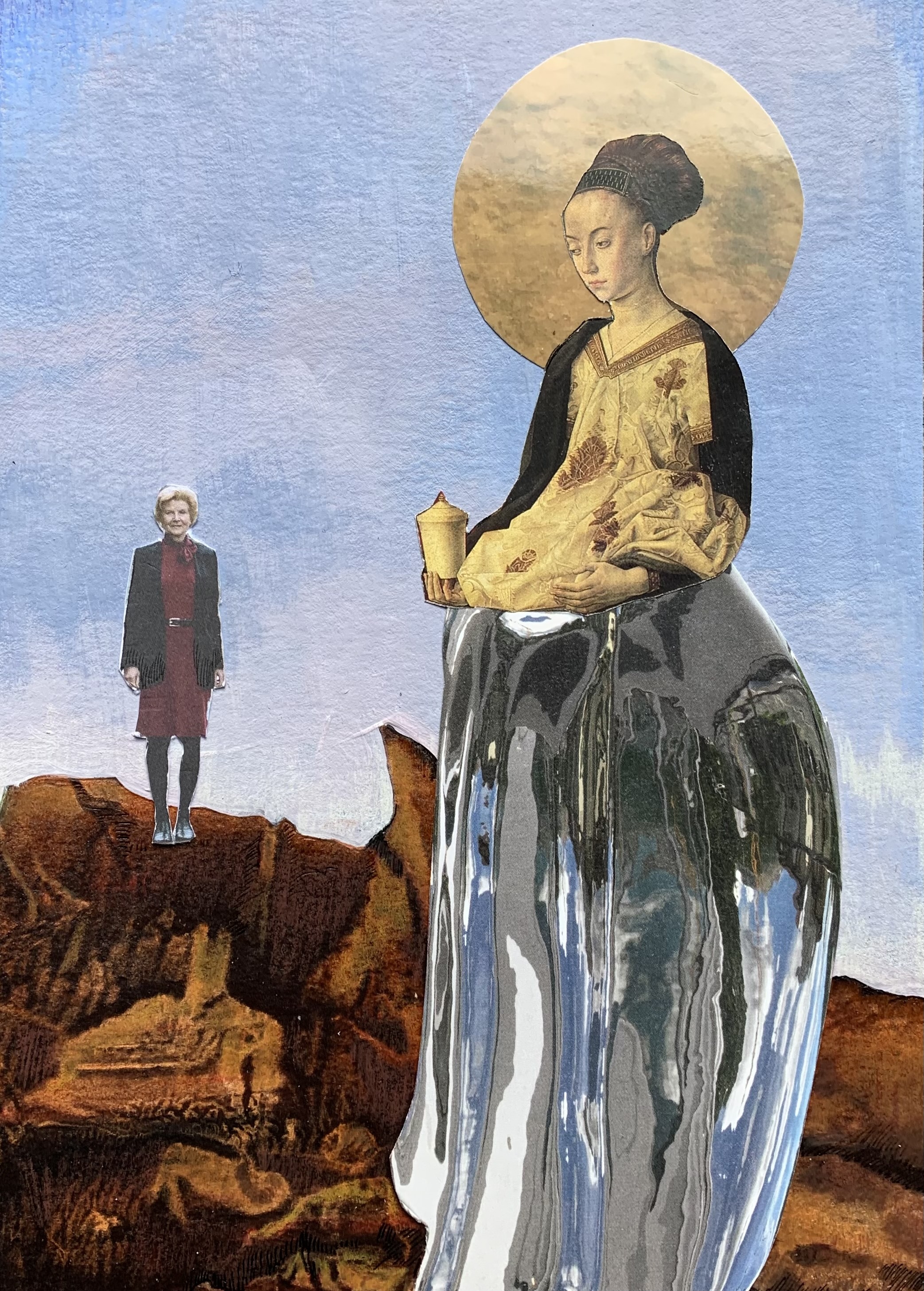 visions from behind is a series of works that moves between reality and the subconscious. drawing inspiration from the surrealists, the collages merge with painterly elements to create figurative yet ambiguous images. Familiar forms dissolve into unexpected relationships, inviting the viewer to look twice — and think deeper. the works balance humor and unease. they can provoke a quiet smile, but also open space for reflection. what is visible is never the full story; meaning unfolds gradually, shaped by personal associations and hidden narratives.