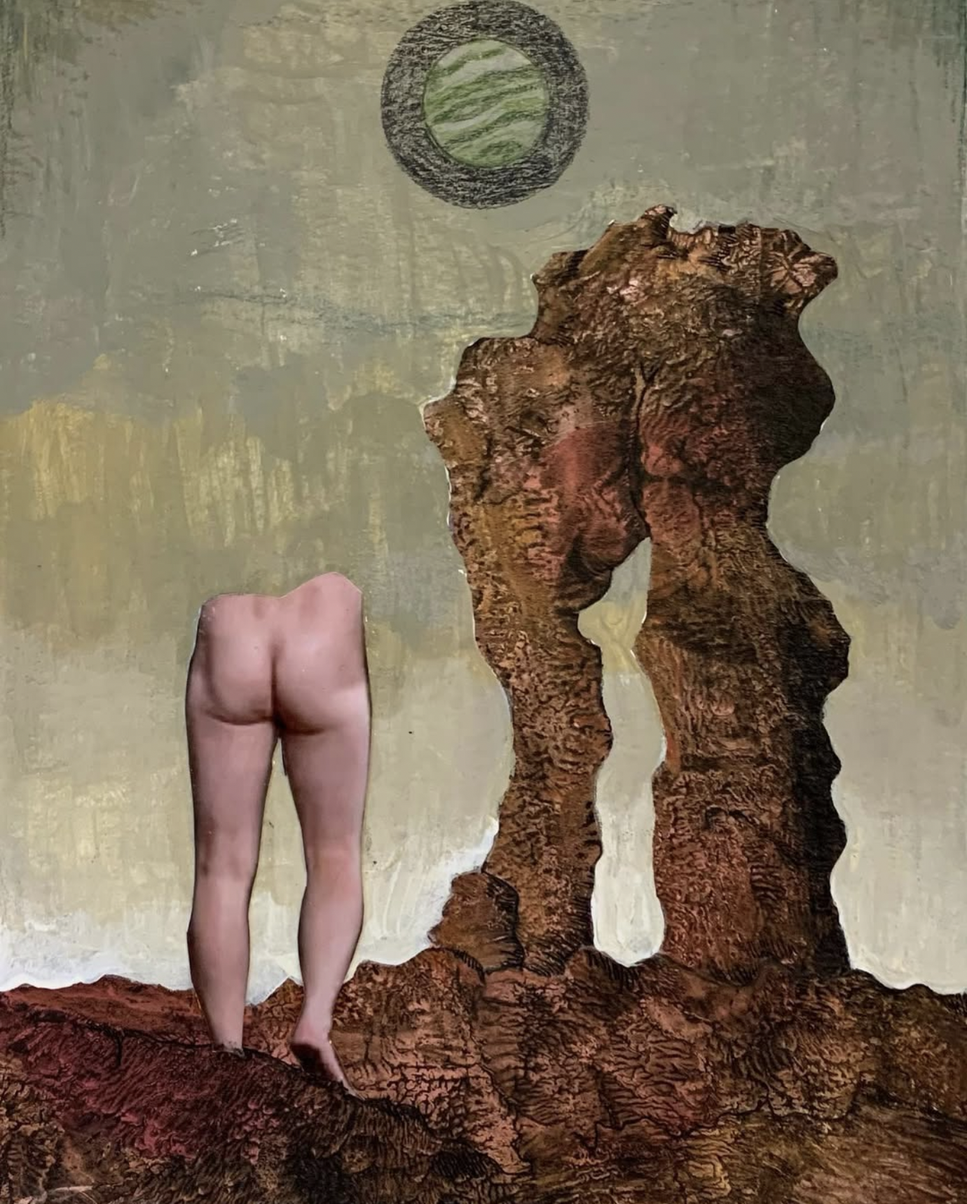 visions from behind is a series of works that moves between reality and the subconscious. drawing inspiration from the surrealists, the collages merge with painterly elements to create figurative yet ambiguous images. Familiar forms dissolve into unexpected relationships, inviting the viewer to look twice — and think deeper. the works balance humor and unease. they can provoke a quiet smile, but also open space for reflection. what is visible is never the full story; meaning unfolds gradually, shaped by personal associations and hidden narratives.